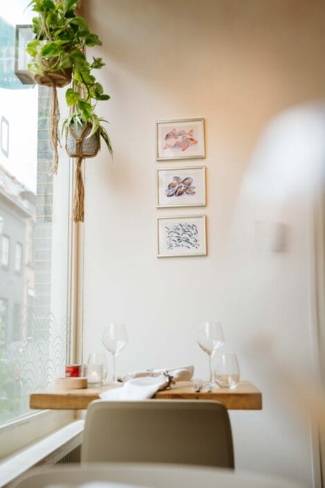 Welkom bij De Viszaeck, het visrestaurant van Amersfoort. Een klein en intiem restaurant met een romantisch terras aan het water, waar alles draait om rust, aandacht en pure smaken. Geen allures, maar fris en chique. Met een open keuken en een ontspannen sfeer waarin je je direct op je gemak voelt.