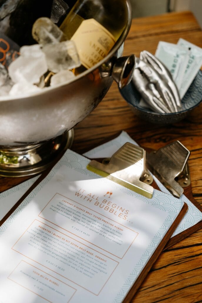 Onze keuken staat volledig in het teken van alles wat de zee te bieden heeft. Dagverse vis, schelp- en schaaldieren, bereid met respect voor het product en het seizoen. We werken met een kleine, wisselende menukaart, zodat we alleen koken met wat op dat moment het mooiste is. Eerlijk, verfijnd en puur.